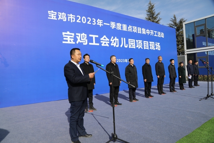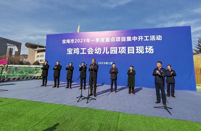 1月28日,寶雞市2023年一季度重點項目集中開工活動在集團公司承建的寶雞市總工會幼兒園項目現(xiàn)場舉行,市委書記楊廣亭下達開工令,市長王勇、市人大常委會主任景耀平、市政協(xié)主席劉榮賢、市委副書記段小龍參加活動。市委常委、常務(wù)副市長賈珉亮主持開工活動。市人大常委會副主任、市總工會主席陳小平介紹項目情況。