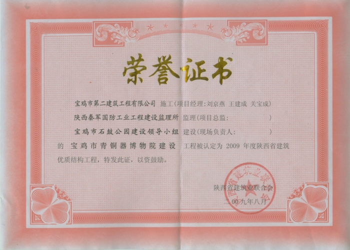 2009年省級優(yōu)質(zhì)結(jié)構(gòu)工程(青銅器)